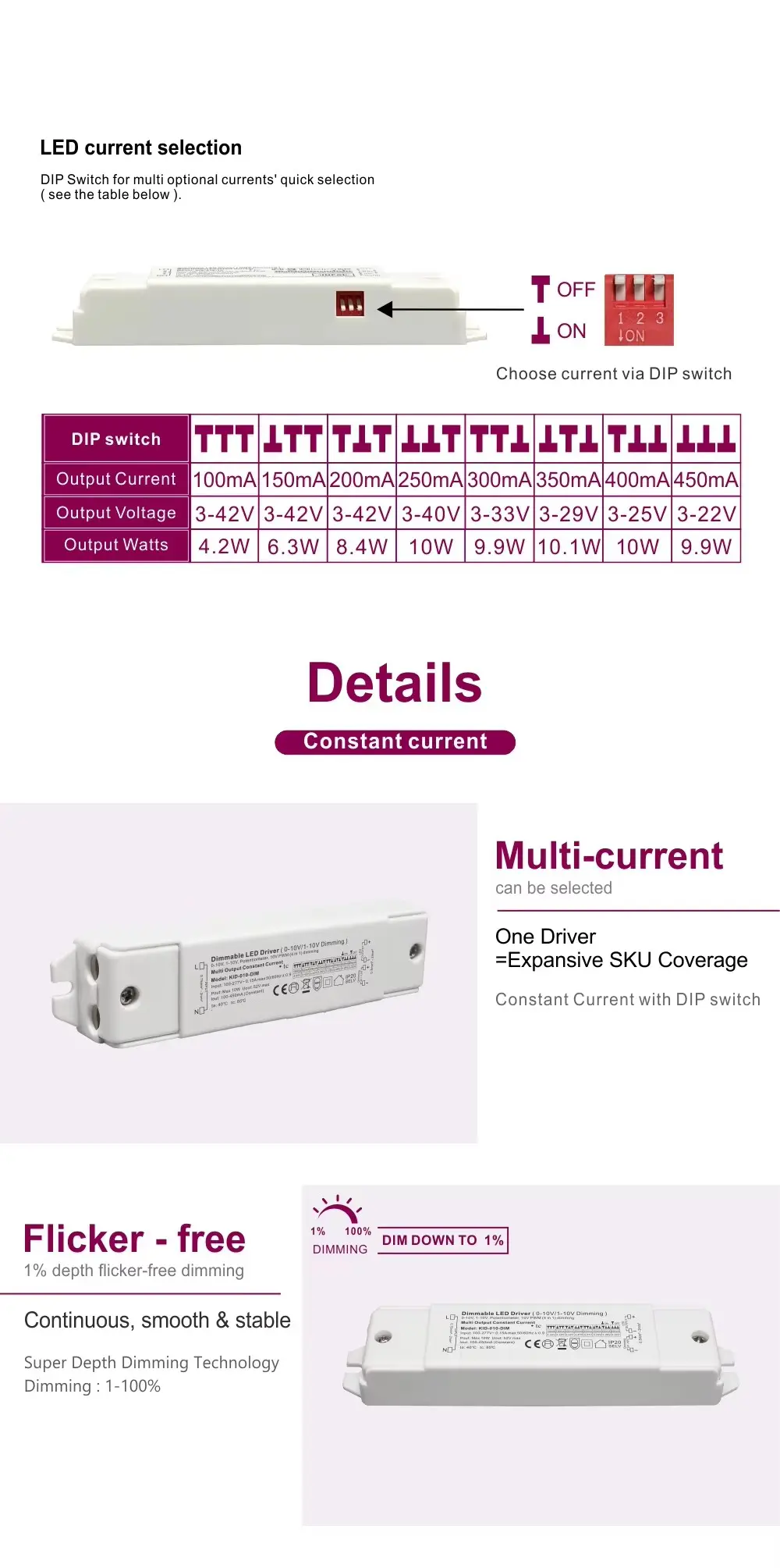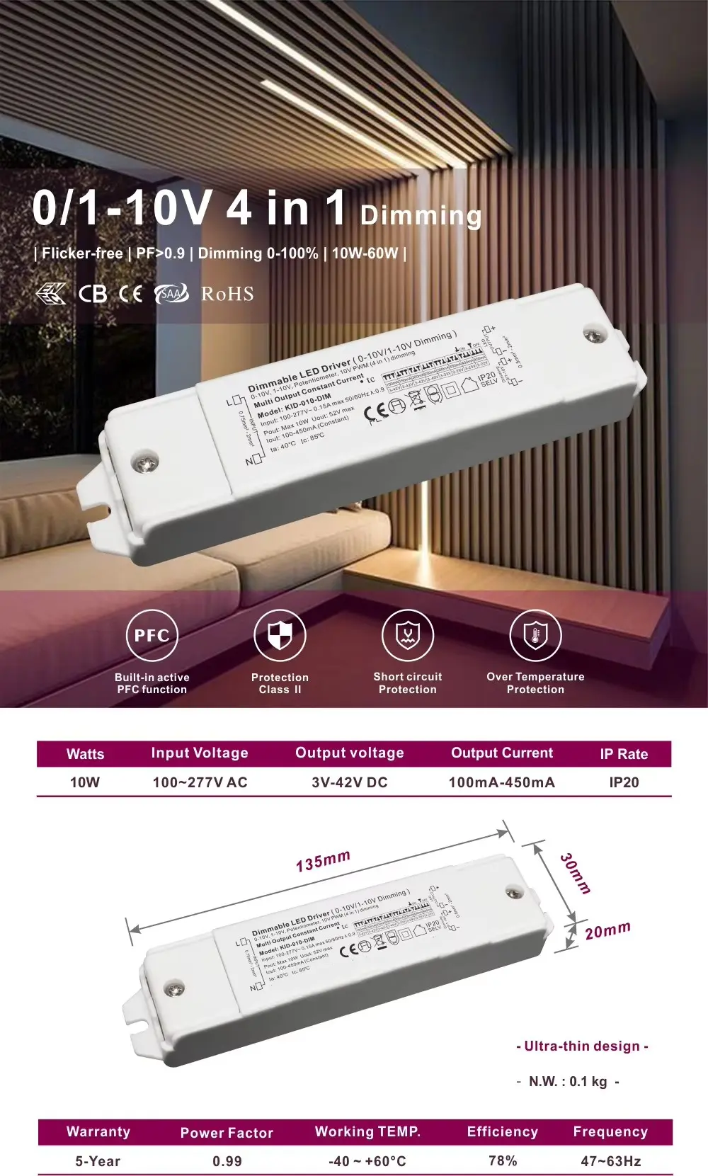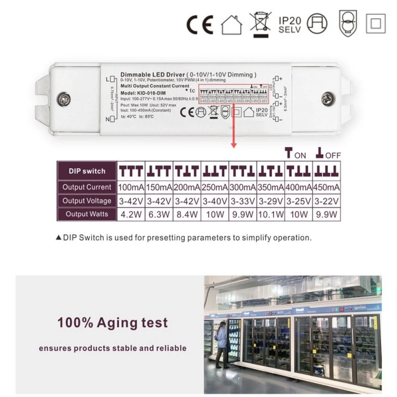 Starwell Constant Current 0-10V Dimmable Led Driver स्पेसिफिकेशन: