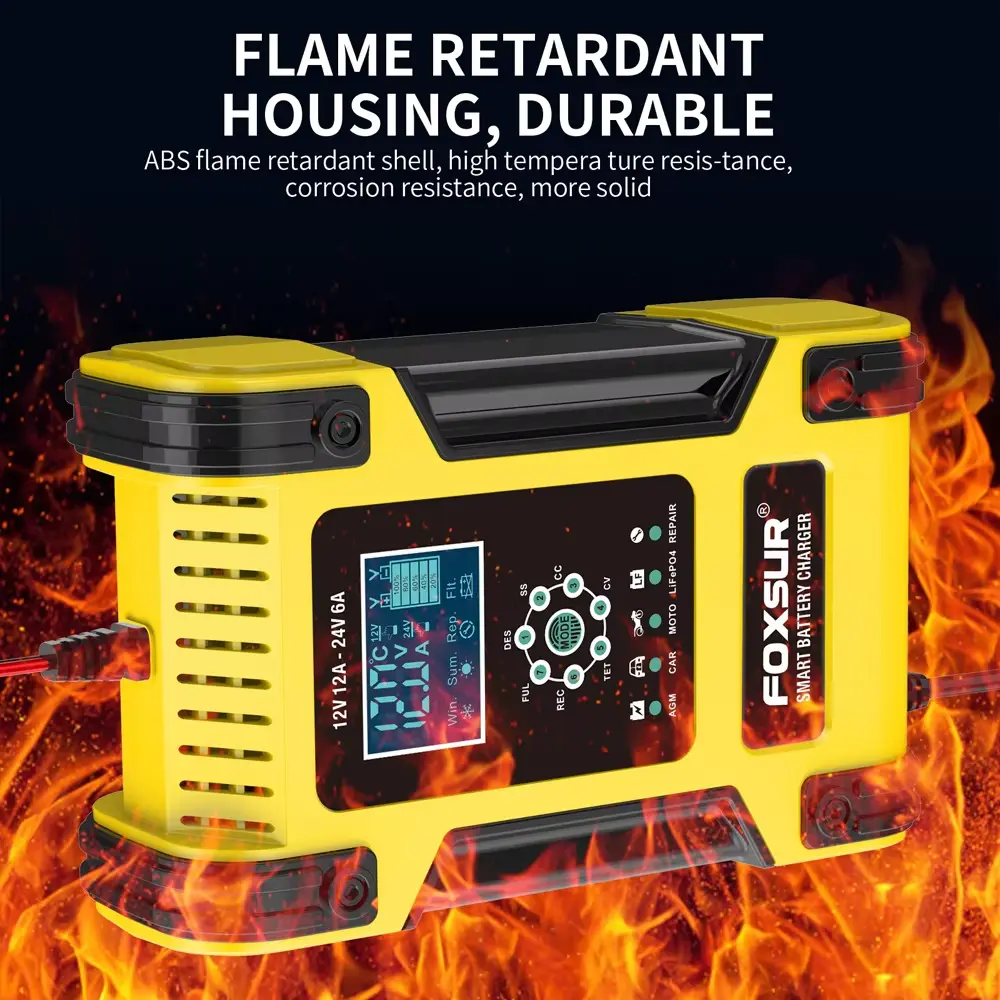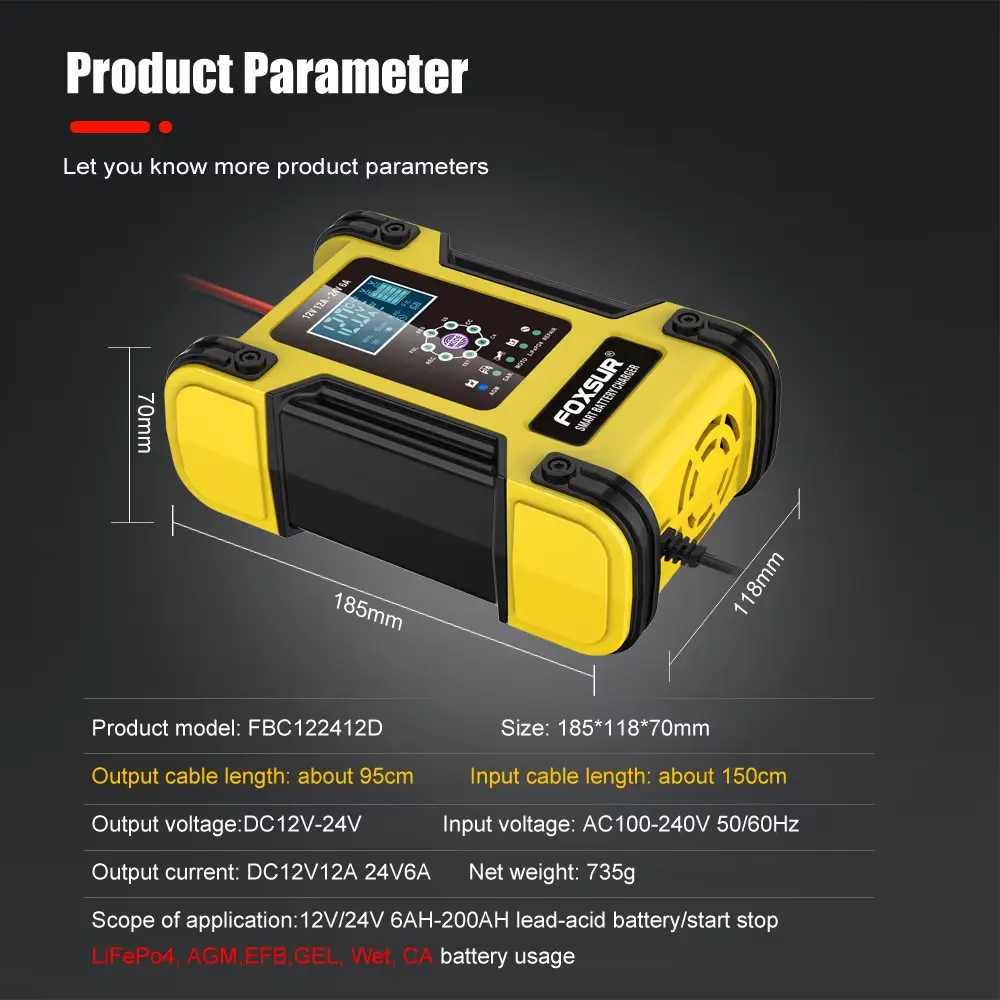बाजारातील इतर चार्जर्सच्या विपरीत, 12V 24V 12A 7-सेगमेंट इंटेलिजेंट लीड-ऍसिड बॅटरी चार्जर तुमची बॅटरी आणि चार्जर दोन्हीचे संरक्षण करण्यासाठी व्यापक सुरक्षा वैशिष्ट्ये ऑफर करतो.