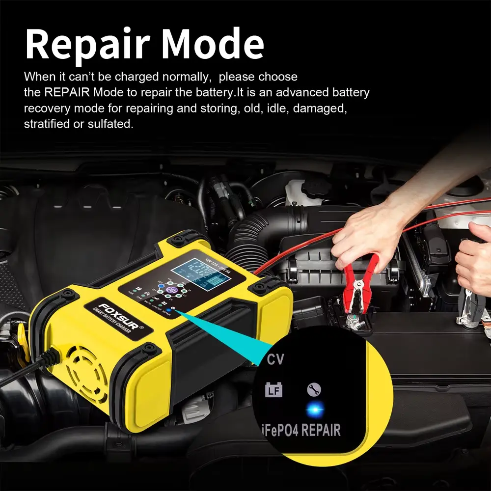 इंटेलिजेंट रिपेअर फंक्शन: बिल्ट-इन पल्स डिसल्फेशन मोड सल्फेटेड बॅटरी पुनर्प्राप्त करण्यात आणि गमावलेली क्षमता पुनर्संचयित करण्यात मदत करते.