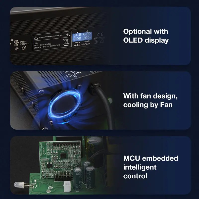 कार्यक्षम वीज पुरवठा: 20-50A आउटपुट करंटला सपोर्ट करून 12V ते 72V च्या रेंजमध्ये स्थिर वीज पुरवते.