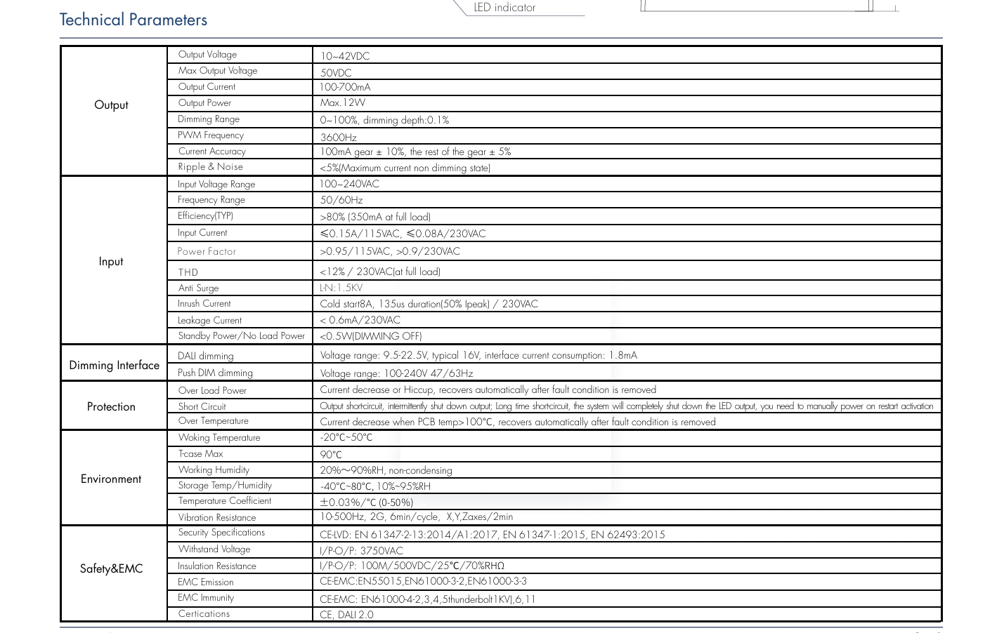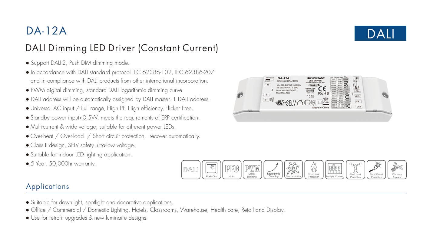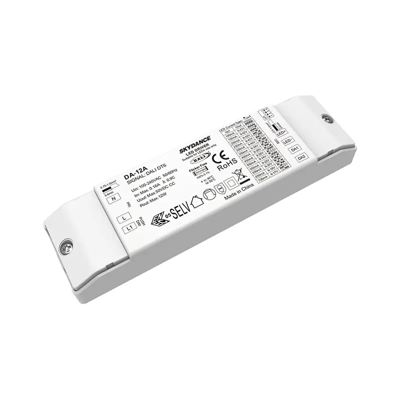 STARWELL कारखान्याचा उच्च दर्जाचा 12W कॉन्स्टंट करंट DALI Dimmable LED ड्रायव्हर हा इंटेलिजेंट लाइटिंग सिस्टमसाठी उच्च-कार्यक्षमता कोर आहे, जो जागतिक DALI प्रोटोकॉल आणि 100-240V AC वाइड इनपुटशी सुसंगत आहे. DALI Dimmable LED ड्रायव्हर ±5% अचूकतेसह स्थिर स्थिर करंट आउटपुट (100-900mA समायोज्य) वितरीत करतो, संपूर्ण फिक्स्चरमध्ये सातत्यपूर्ण ब्राइटनेस सुनिश्चित करतो. T-PWM डिमिंग तंत्रज्ञानाचे वैशिष्ट्य असलेले, ते डोळ्यांच्या आरामासाठी IEEE 1789 मानकांची पूर्तता करून, फ्लिकरशिवाय 0.0001%-100% अल्ट्रा-डीप डिमिंग प्राप्त करते. PF>0.95 आणि 87% पर्यंत कार्यक्षमतेसह, ते उर्जेचा अपव्यय कमी करते, तर IP20 संरक्षण आणि -20~50℃ ऑपरेटिंग तापमान श्रेणी निवासी, व्यावसायिक आणि औद्योगिक परिस्थितींना अनुकूल करते.