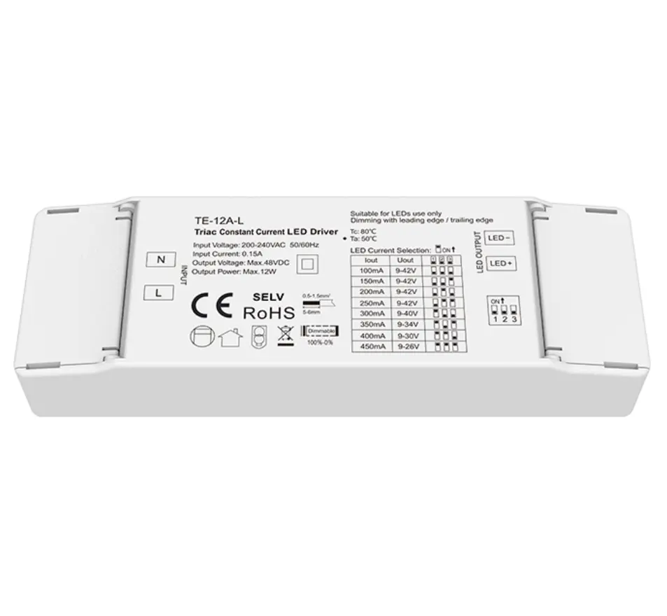 स्टारवेल उच्च गुणवत्तेचा 12W स्थिर करंट ट्रायक डिमिंग एलईडी ड्रायव्हर ओव्हरव्होल्टेज, ओव्हरकरंट आणि शॉर्ट-सर्किट संरक्षण कार्ये एकत्रित करतो आणि उच्च पॉवर घटक आणि कमी हार्मोनिक विरूपण, एकाधिक आंतरराष्ट्रीय ऊर्जा कार्यक्षमता आणि सुरक्षा मानकांची पूर्तता करतो. त्याचे कॉम्पॅक्ट डिझाइन इन्स्टॉल करणे सोपे करते आणि डाउनलाइट्स, स्पॉटलाइट्स आणि सजावटीच्या दिवे यासारख्या विविध इनडोअर लाइटिंग परिस्थितींसाठी योग्य बनवते, ज्यामुळे ते ऊर्जा-बचत नूतनीकरण आणि स्मार्ट लाइटिंग ऍप्लिकेशन्ससाठी एक आदर्श ड्रायव्हर सोल्यूशन बनते. उत्पादनवैशिष्ट्ये: