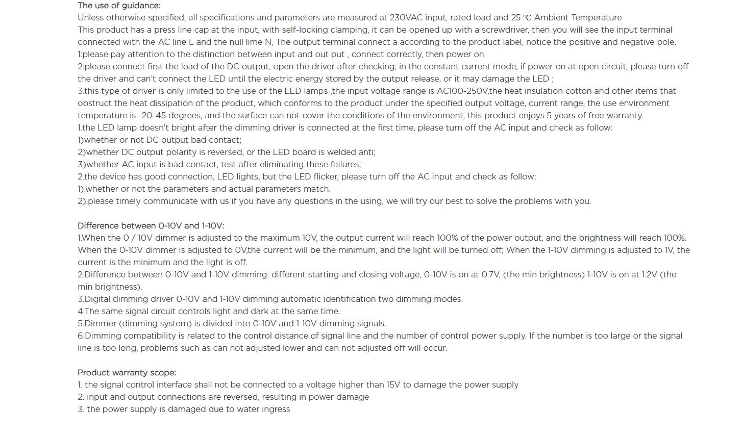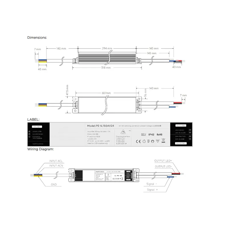मानक 0-10V डिमिंग इंटरफेससह सुसज्ज, ते 1% ते 100% पर्यंत गुळगुळीत ब्राइटनेस समायोजनास समर्थन देते, बाजारातील सर्वात आघाडीच्या डिमरशी सुसंगत. 95% पर्यंत उच्च ऊर्जा कार्यक्षमता आणि 100-277V ची विस्तृत एसी इनपुट श्रेणी, हे आंतरराष्ट्रीय प्रकल्पांसाठी योग्य असलेल्या जागतिक व्होल्टेज मानकांशी सहजतेने जुळवून घेते.