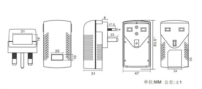 US/EU/UK/AU/IN अदलाबदल करण्यायोग्य वॉल प्लगचे समर्थन करते, जगभरातील अनुप्रयोगांसाठी योग्य.