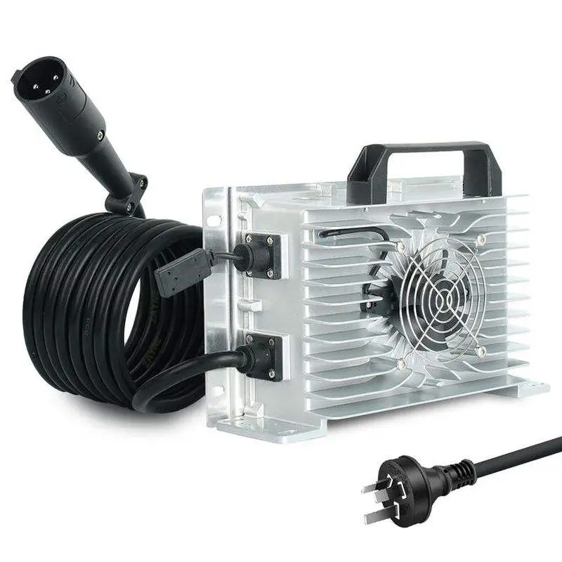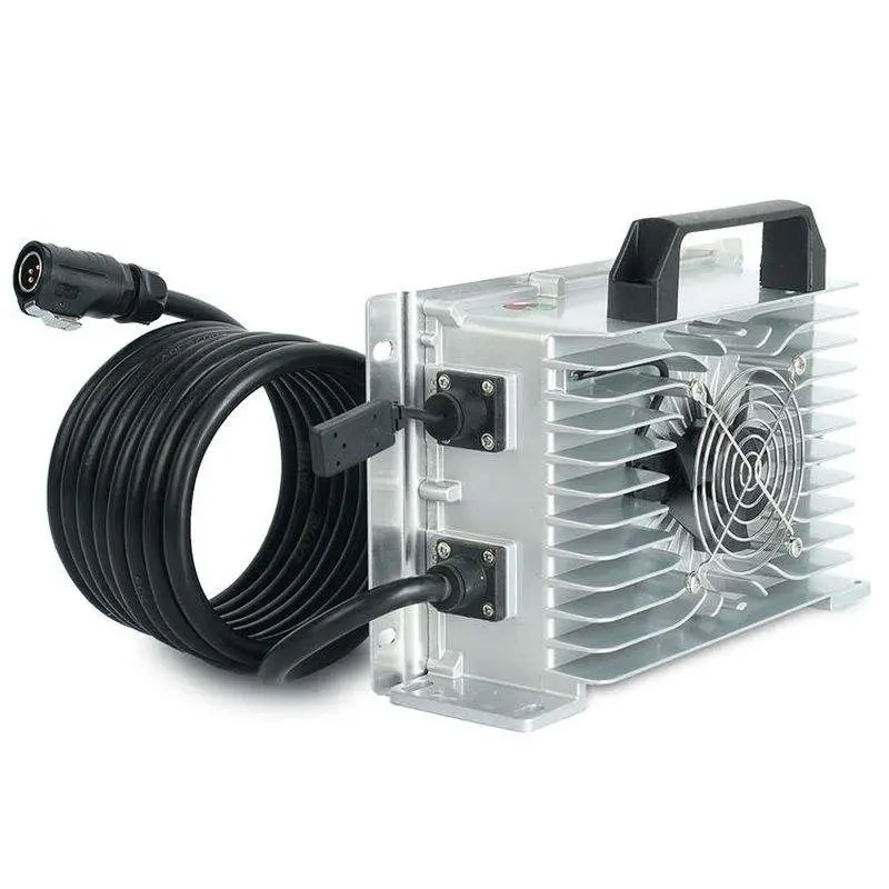 24V 40A लिथियम आयन बॅटरी चार्जर हे इलेक्ट्रिक वाहने, गोल्फ कार आणि औद्योगिक उपकरणांमध्ये लिथियम-आयन बॅटरीसाठी डिझाइन केलेले उच्च-कार्यक्षमता, जलद-चार्जिंग डिव्हाइस आहे. हे सुरक्षित, विश्वासार्ह आणि कार्यक्षम चार्जिंग वितरीत करते आणि एकत्रितपणे डाउनटाइम कमी करतेबुद्धिमान OBC कार्ये आणि दीर्घकाळ टिकणाऱ्या बॅटरी कार्यक्षमतेसाठी मजबूत संरक्षण.