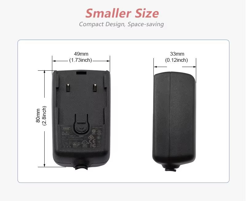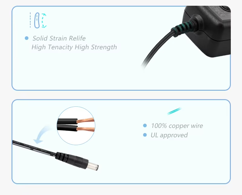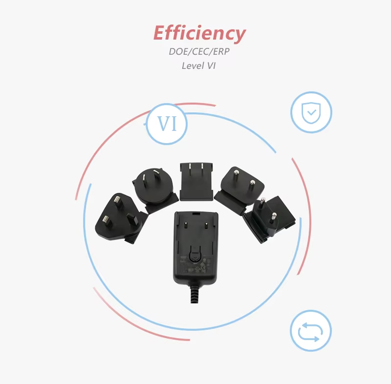 कार्यक्षम आणि स्थिर वीज पुरवठा: उच्च-कार्यक्षमता 24W पॉवर ॲडॉप्टर म्हणून, ते कार्यक्षम रूपांतरण साध्य करण्यासाठी प्रगत स्विचिंग इंटरचेंज करण्यायोग्य प्लग पॉवर सप्लाय तंत्रज्ञान स्वीकारते. तुमच्या उपकरणांसाठी सतत आणि शुद्ध ऊर्जा प्रदान करून ते स्थिरपणे पर्यायी प्रवाहाचे थेट प्रवाह (AC ते DC अदलाबदल करण्यायोग्य प्लग पॉवर ॲडॉप्टर) मध्ये रूपांतरित करू शकते.