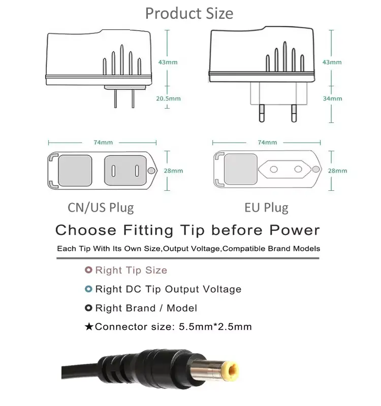 AC प्लग: US/EU/AU/UK/CN/JP प्लग अदलाबदल करण्यायोग्य