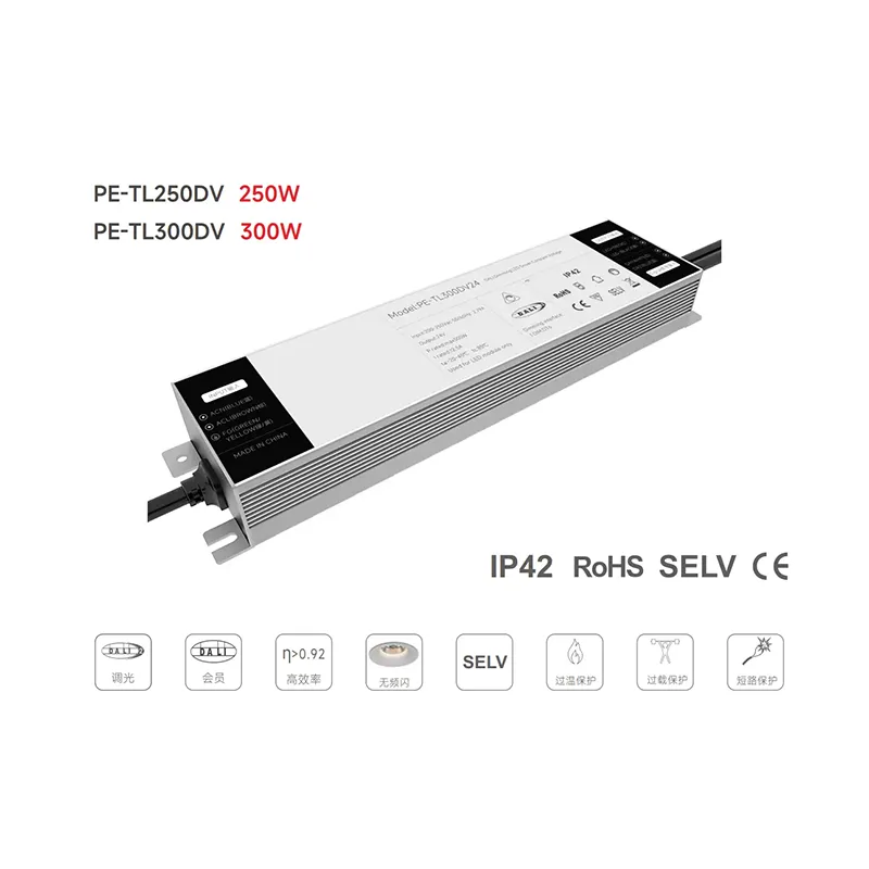 स्टारवेल फॅक्टरीचा उच्च दर्जाचा 250W कॉन्स्टनॅट करंट DALI Dimmable LED ड्रायव्हर हे व्यावसायिक LED लाइटिंग सिस्टमसाठी डिझाइन केलेले उच्च-कार्यक्षमता पॉवर सोल्यूशन आहे, DALI-2 प्रोटोकॉलद्वारे गुळगुळीत, फ्लिकर-फ्री डिमिंगसह स्थिर 24V DC आउटपुट प्रदान करते. IEC 62386 मानकांशी सुसंगत, ते 0-100% रेखीय अंधुकतेचे समर्थन करते, DALI नियंत्रक आणि व्यावसायिक, औद्योगिक आणि आर्किटेक्चरल ऍप्लिकेशन्ससाठी प्रकाश व्यवस्थापन प्रणालीसह अखंड सुसंगतता सुनिश्चित करते.