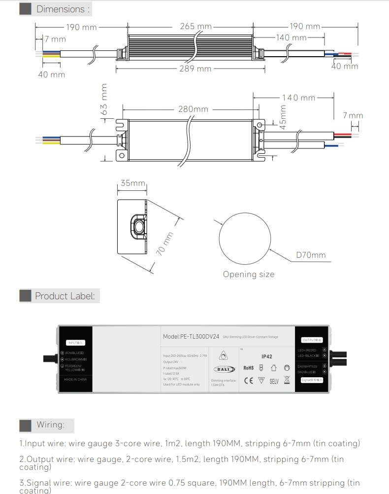 कॉम्पॅक्ट, IP20 एन्क्लोजरसह, सीलिंग व्हॉईड्स, कंट्रोल कॅबिनेट किंवा लाइटिंग फिक्स्चरमध्ये स्थापित करणे सोपे आहे. त्याचे स्थिर व्होल्टेज डिझाइन समांतर-कनेक्ट केलेल्या LED पट्ट्या, पॅनेल आणि मॉड्यूल्ससाठी सातत्यपूर्ण कामगिरी सुनिश्चित करते, ज्यामुळे ते किरकोळ जागा, कार्यालये, हॉटेल्स आणि बाहेरील वास्तुशास्त्रीय प्रकाश प्रकल्पांसाठी आदर्श बनते.