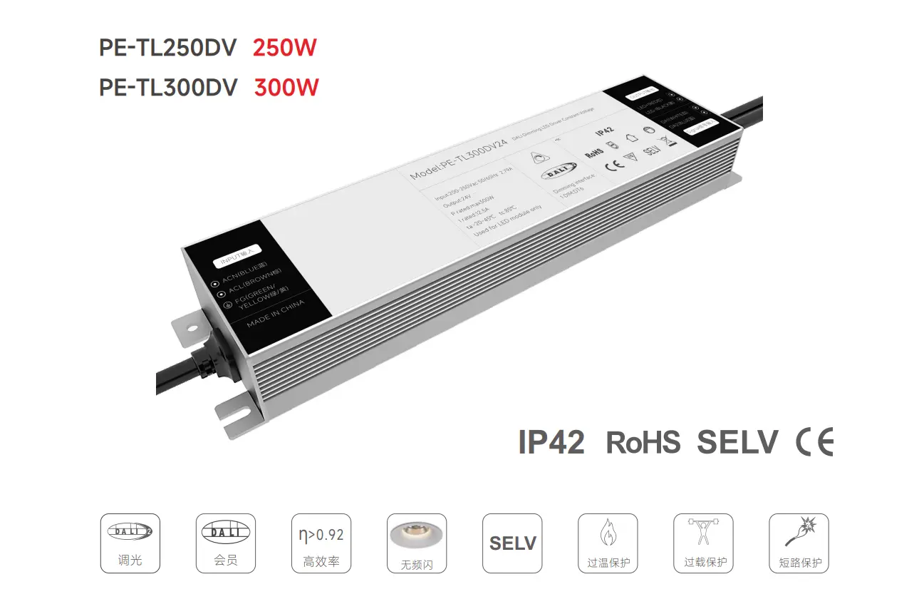 100-277V AC ची विस्तृत इनपुट व्होल्टेज श्रेणी वैशिष्ट्यीकृत, ते 92% पर्यंत ऊर्जा कार्यक्षमतेसह जागतिक पॉवर ग्रिडवर कार्यक्षमतेने कार्य करते, वीज वापर आणि उष्णता निर्मिती कमी करते. ओव्हर-व्होल्टेज, ओव्हर-करंट, शॉर्ट-सर्किट आणि अति-तापमान विरुद्ध अंगभूत संरक्षण दीर्घकालीन विश्वासार्हता आणि सुरक्षित ऑपरेशनची हमी देते.