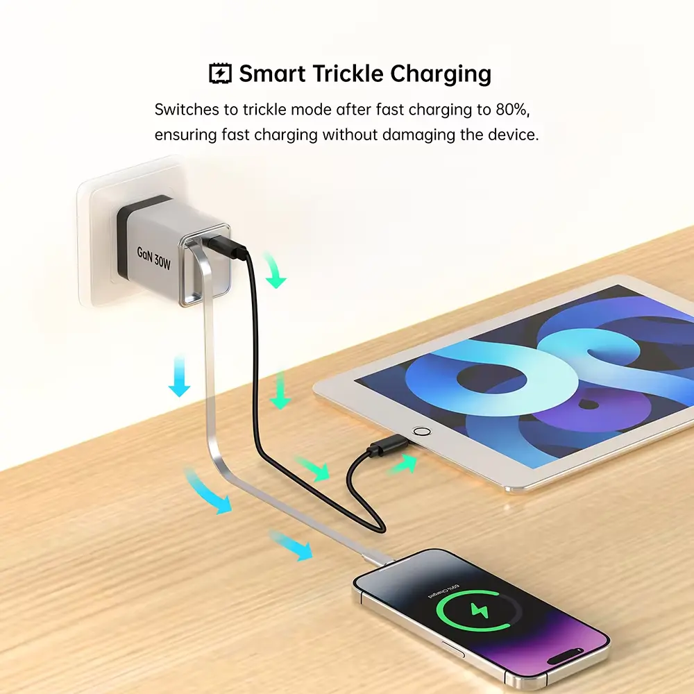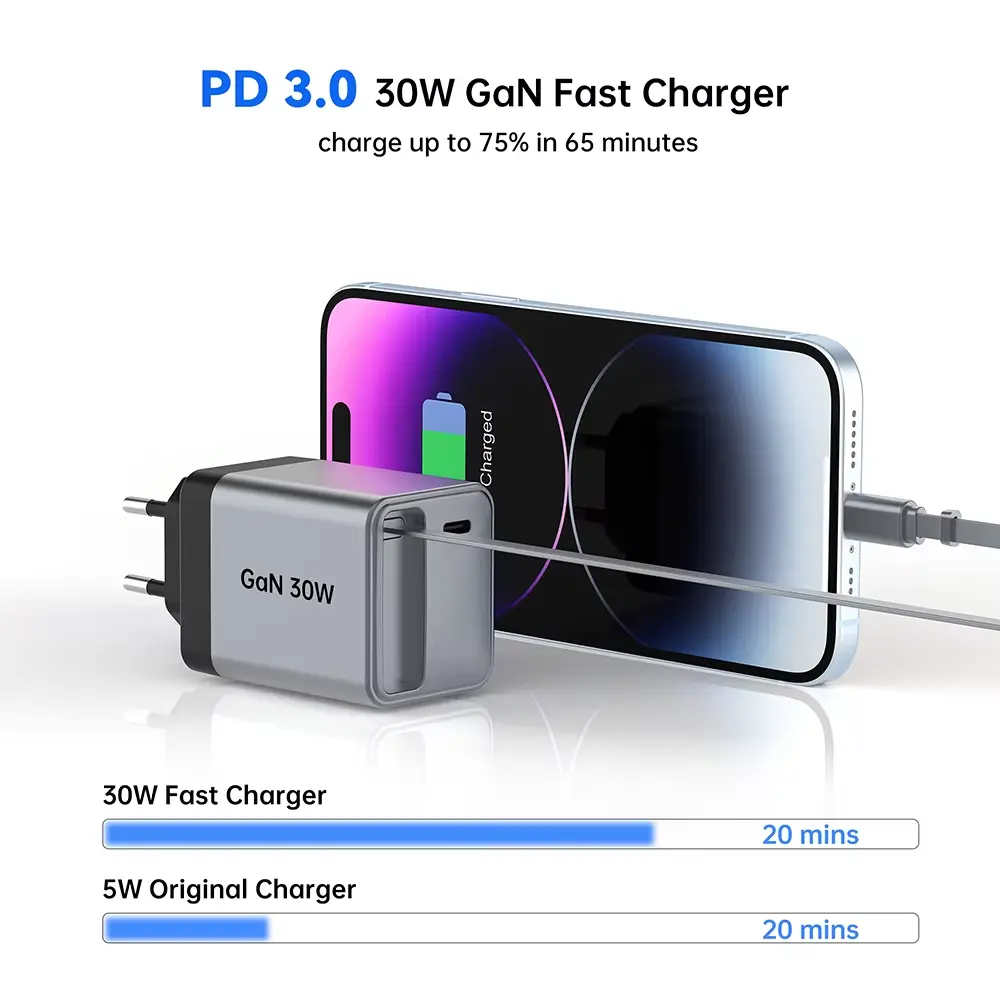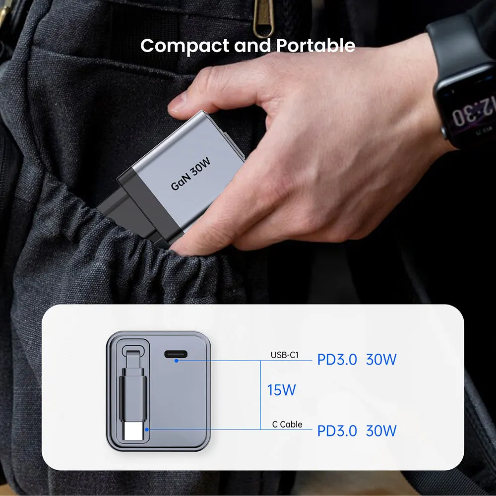 मागे घेता येण्याजोग्या प्रकार सी केबलचे अल्ट्रा-लाइटवेट, खिशाच्या आकाराचे डिझाइन असलेले 30W क्विक चार्जर ते जवळ बाळगणे सोपे करते. हे घर, ऑफिस किंवा प्रवासासाठी योग्य पर्याय आहे.