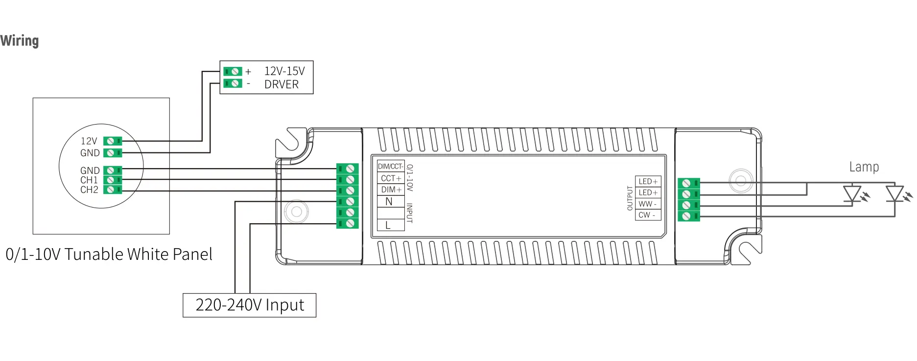 विशेषत:, या ड्रायव्हरमध्ये उत्कृष्ट AC-DC ऊर्जा हस्तांतरण कार्यक्षमता आहे, इनपुट AC पॉवरला LED ऑपरेशनसाठी योग्य DC पॉवरमध्ये प्रभावीपणे रूपांतरित करते, ऊर्जा संरक्षण आणि स्थिरतेचा समतोल साधतो. वापरकर्ते मानक 0-10V ॲनालॉग डिमिंग सिग्नलद्वारे कनेक्ट केलेल्या फिक्स्चरची चमक आणि रंग तापमान स्वतंत्रपणे आणि सहजतेने नियंत्रित करू शकतात. याचा अर्थ ते केवळ 0% ते 100% पर्यंत स्टेपलेस ब्राइटनेस ऍडजस्टमेंटलाच सपोर्ट करत नाही, तर कलर टेम्परेचर डिमिंग फंक्शनॅलिटी देखील समाकलित करते, ज्यामुळे वापरकर्त्यांना एका बटणाने उबदार 2700K पिवळा प्रकाश आणि 6500K थंड पांढरा प्रकाश यांच्यात मुक्तपणे स्विच करता येतो, विविध परिस्थिती आणि परिस्थितींना अनुकूल असे हलके वातावरण तयार करते. त्यामुळे, कलर टेम्परेचर डिमिंग LED ड्रायव्हरसह 40W इनडोअर लाइटिंग वापरण्यासाठी हे एक आदर्श आहे, विशेषत: व्यावसायिक जागा, हाय-एंड घरे, ऑफिस वातावरण आणि हॉटेलच्या ठिकाणांसाठी योग्य आहे जेथे प्रकाशाची गुणवत्ता कठोरपणे आवश्यक आहे.