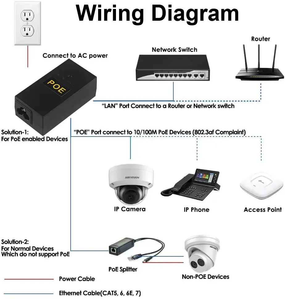 मानक: तुमच्या डिव्हाइसला IEEE 802.3af/ निगोशिएशनची काटेकोरपणे आवश्यकता असल्यास, हे इंजेक्टर सक्रिय हँडशेक प्रोटोकॉलला सपोर्ट करत असल्याची खात्री करा; अन्यथा, एक निष्क्रिय PoE इंजेक्टर गैर-सुसंगत उपकरणे खराब करू शकतो.