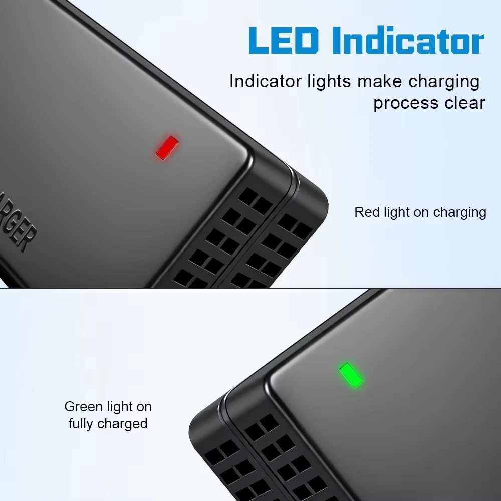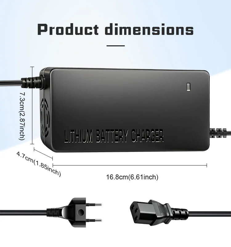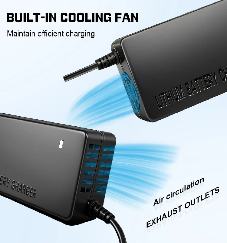 अंगभूत मायक्रो कॉम्प्युटर मॅनेजमेंट चिपसह सुसज्ज, चार्जर रिअल टाइममध्ये बॅटरी व्होल्टेज आणि तापमान चढउतारांवर लक्ष ठेवतो. चार्जिंग प्रक्रिया सुरक्षित आणि नियंत्रणीय राहते याची खात्री करण्यासाठी ते बॅटरी मॅनेजमेंट सिस्टम (BMS) च्या संयोगाने कार्य करते, ज्यामुळे लिथियम-आयन बॅटरी पॅकच्या कठोर आवश्यकता पूर्ण होतात.