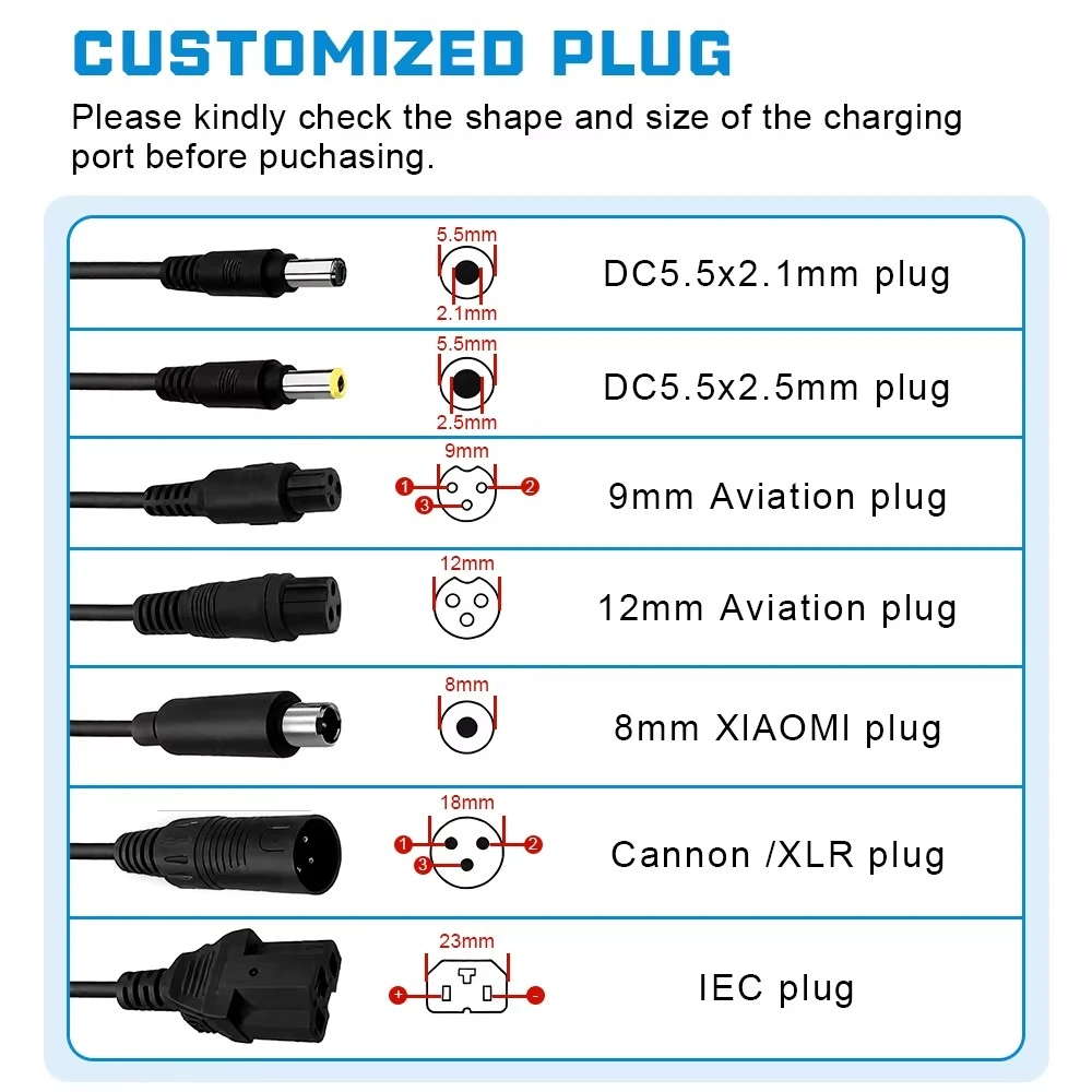 त्याच्या मजबूत कार्यप्रदर्शन असूनही, चार्जरमध्ये कॉम्पॅक्ट आणि हलके डिझाइन आहे ज्यामुळे ते वाहून नेणे सोपे होते. तुम्हाला घरासाठी, ऑफिससाठी चार्जरची गरज असेल किंवा जाता-जाता टॉप-अपसाठी तुमच्या बॅकपॅकमध्ये ठेवण्यासाठी, त्याची पोर्टेबिलिटी तुम्हाला नेहमी सुरक्षित आणि विश्वासार्ह वीज उपलब्ध असल्याची खात्री देते. टिकाऊ आणि वापरकर्त्यासाठी अनुकूल, हा 48V चार्जर तुमच्या लिथियम-आयन बॅटरीचे आरोग्य आणि कार्यप्रदर्शन राखण्यासाठी एक आदर्श उर्जा साथी आहे.