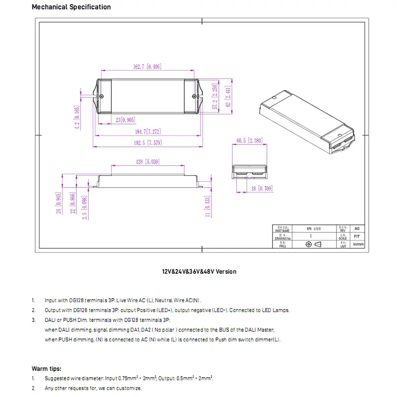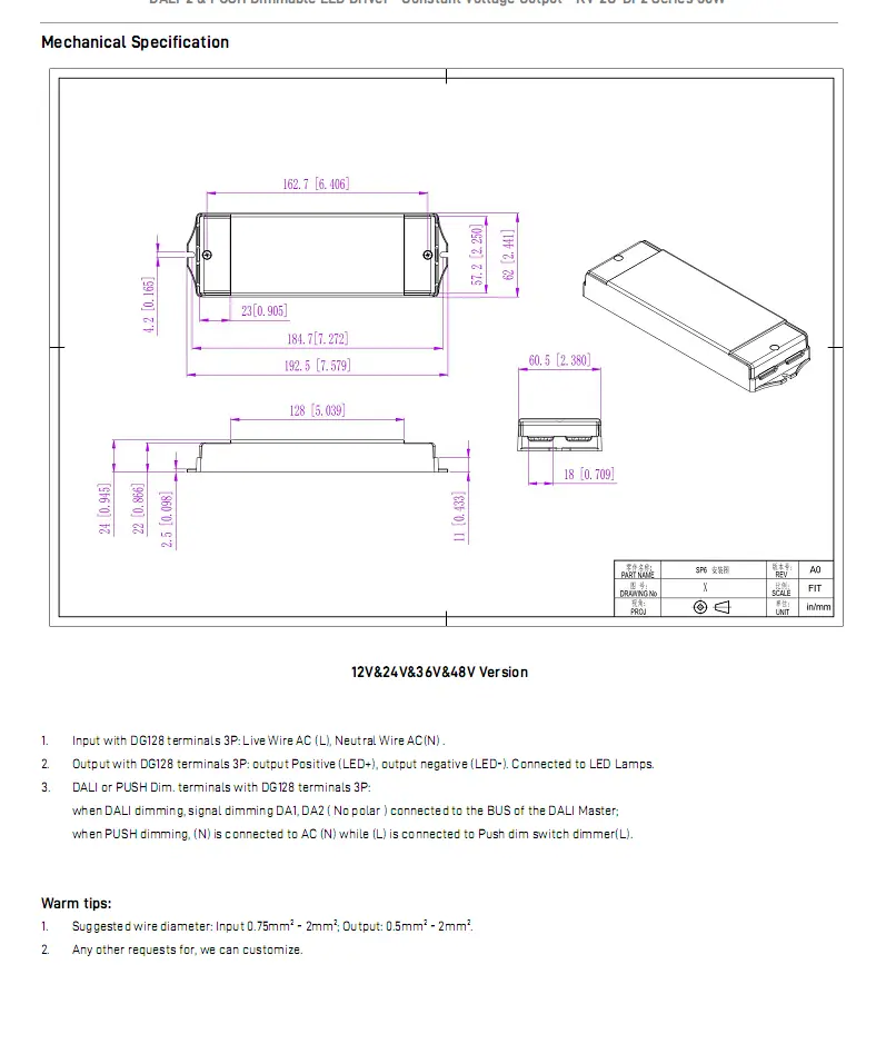 100W DALI कॉन्स्टंट व्होल्टेज CCT डिमिंग LED ड्रायव्हर