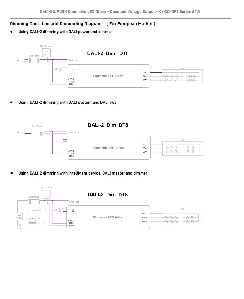 60W कॉन्स्टंट व्होल्टेज DALI CCT Dimmable LED ड्रायव्हर