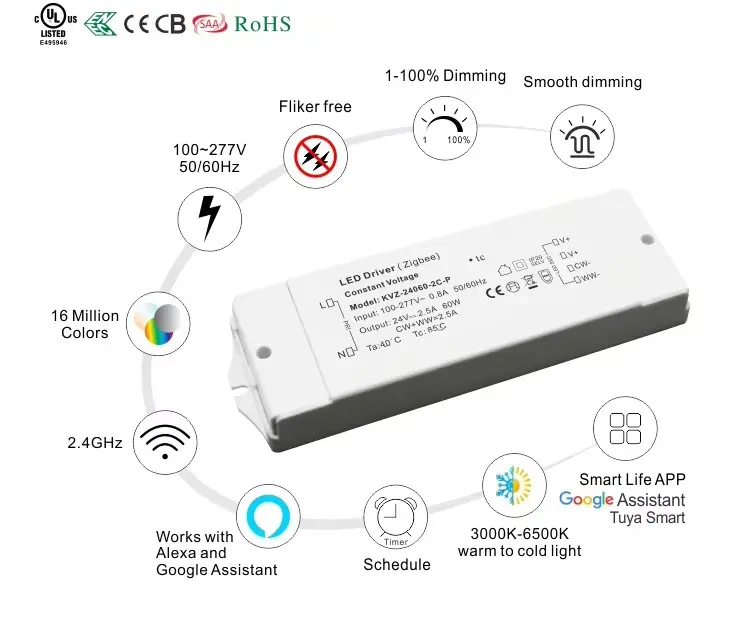 2. Zigbee dimmable driver Google home किंवा Amazon echo सारख्या स्मार्ट स्पीकरद्वारे नियंत्रित होऊ शकतो