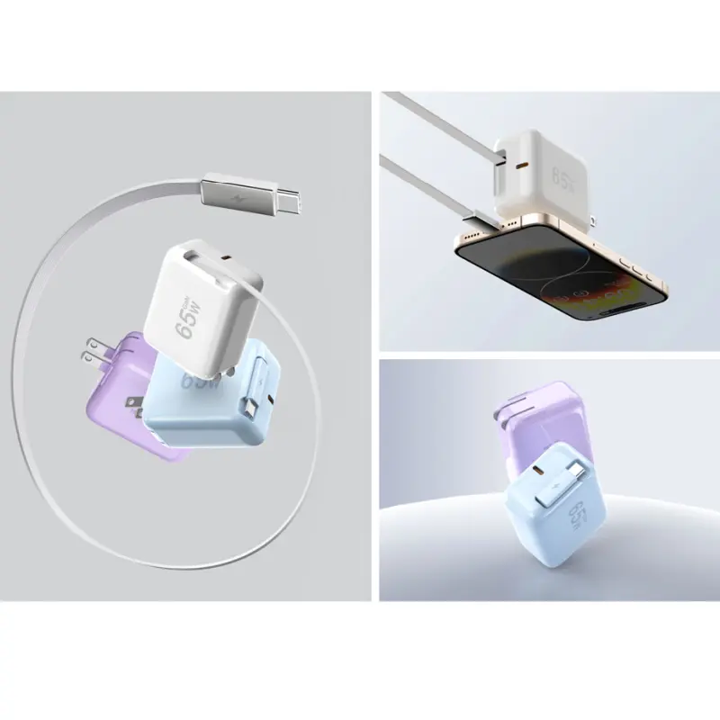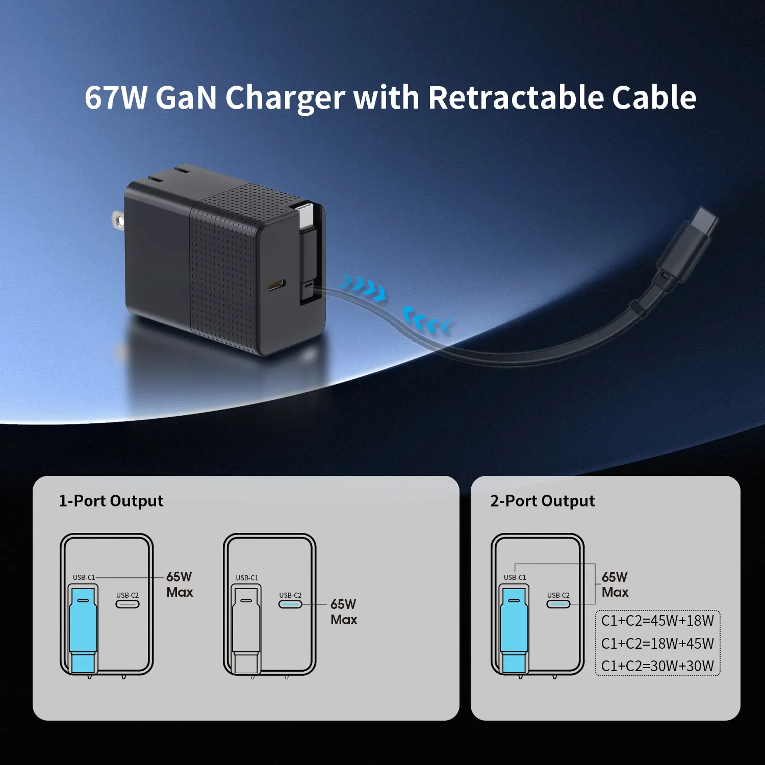 ट्रॅक्टेबल यूएसबी सी केबलसह 65W PD चार्जर |