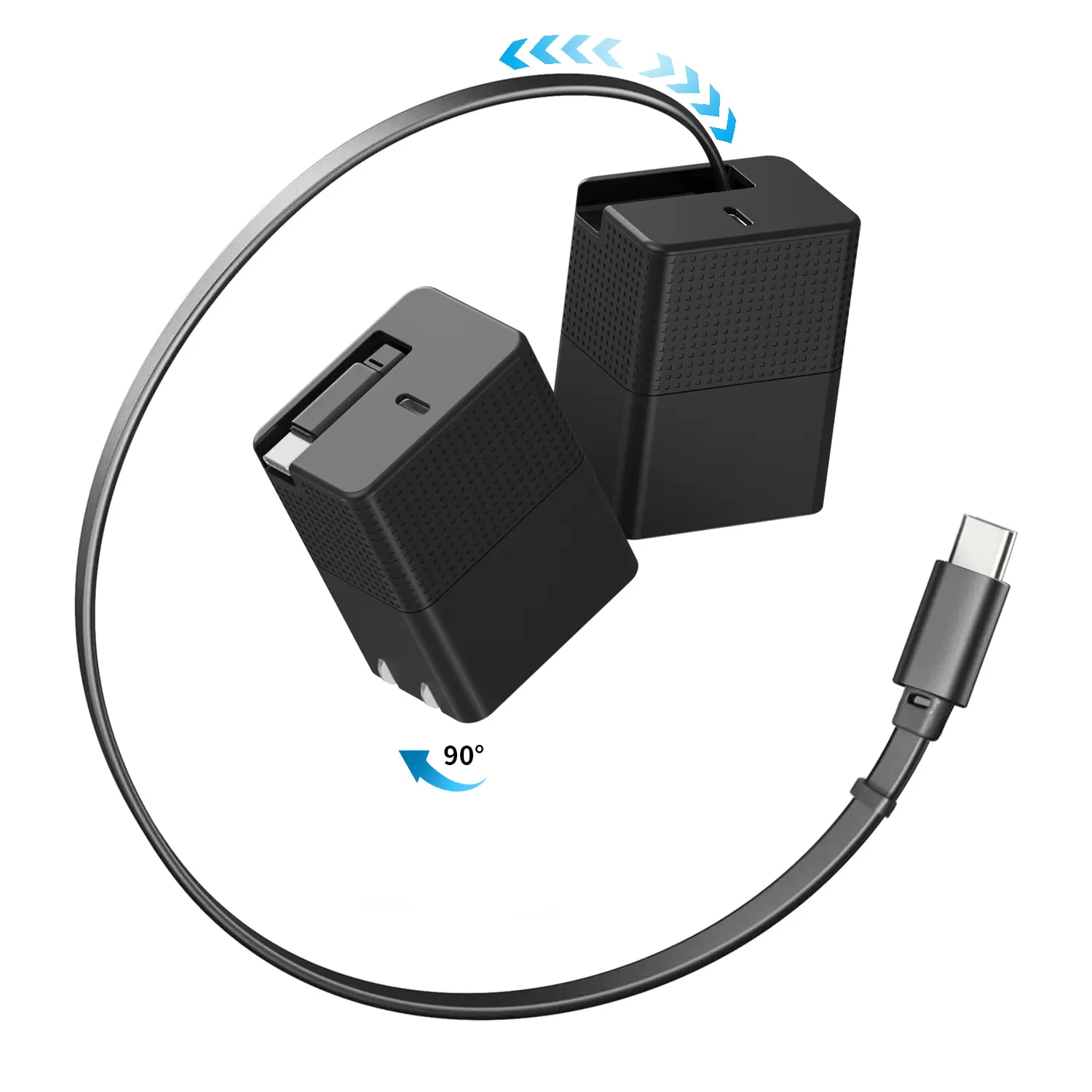 मागे घेता येण्याजोग्या केबल्ससह सुसज्ज: 65W फास्ट चार्जिंग ॲडॉप्टर सोयीस्कर आणि न गुदगुल्या न होणाऱ्या 2.3-फूट (1-मीटर) लांबीच्या USB-C डेटा केबलसह सुसज्ज आहे. ही केबल सहजतेने वाढवू शकते आणि मागे घेऊ शकते, त्यामुळे गोंधळलेल्या केबल्सचा गोंधळ टाळता येतो आणि आपण कधीही चार्ज करू शकता याची खात्री करते.