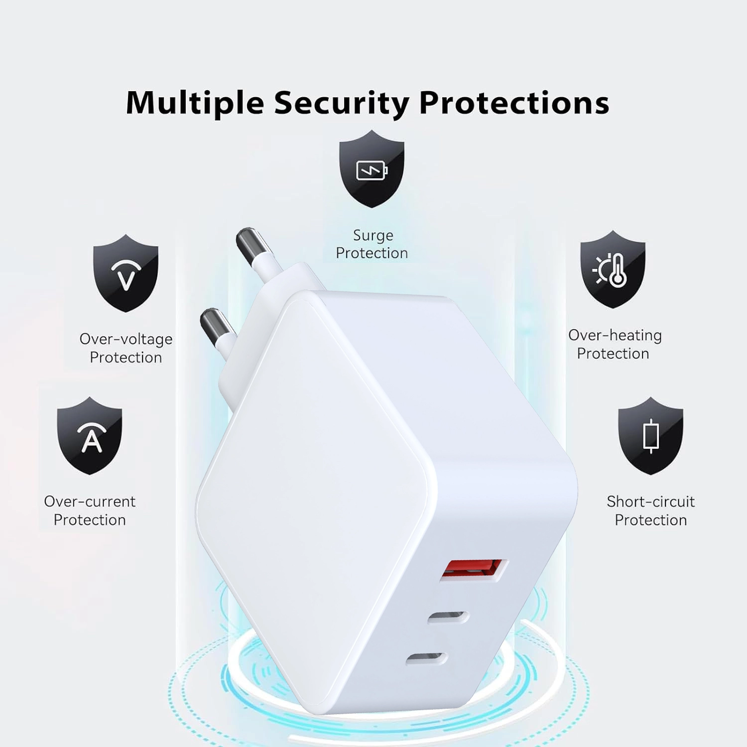 प्रगत सेफ्टी प्रोटेक्शन-बिल्ट-इन ओव्हरव्होल्टेज, ओव्हरकरंट, ओव्हरहाट आणि शॉर्ट-सर्किट संरक्षण तुमच्या सर्व उपकरणांचे सुरक्षित आणि विश्वासार्ह चार्जिंग सुनिश्चित करते.