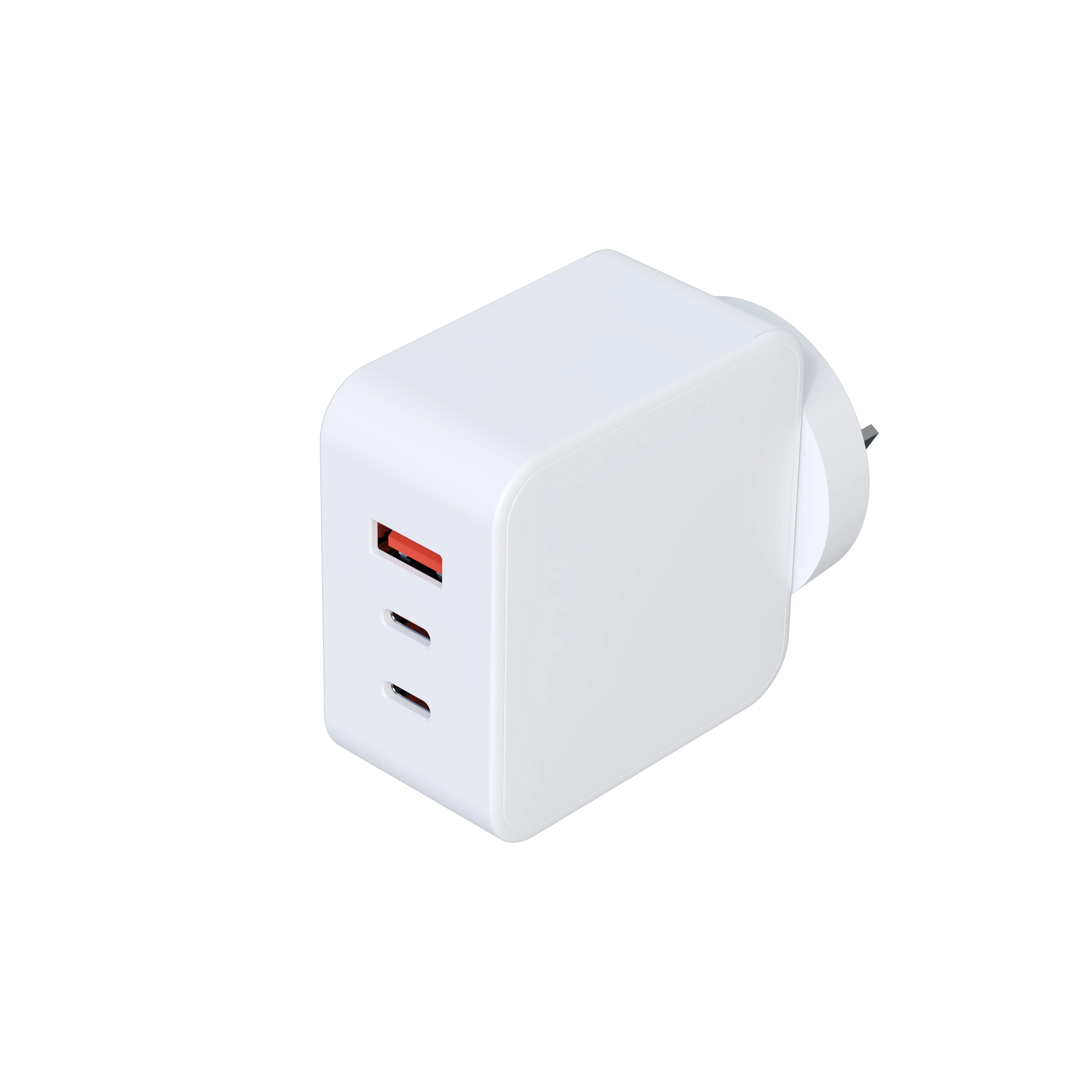 लॅपटॉप 2A आउटपुटसाठी 65W PD 3.0 अल्ट्रा-थिन 3 पोर्ट UK GaN चार्जर फास्ट चार्जर OTP |