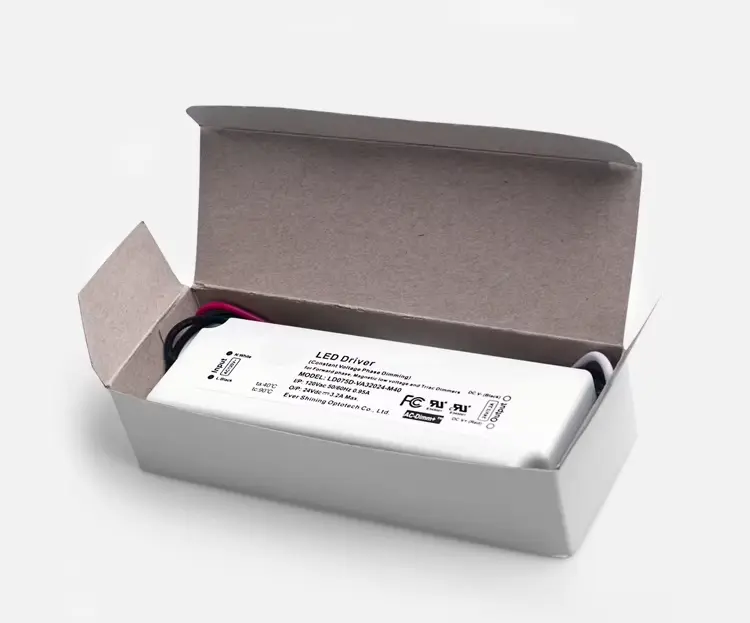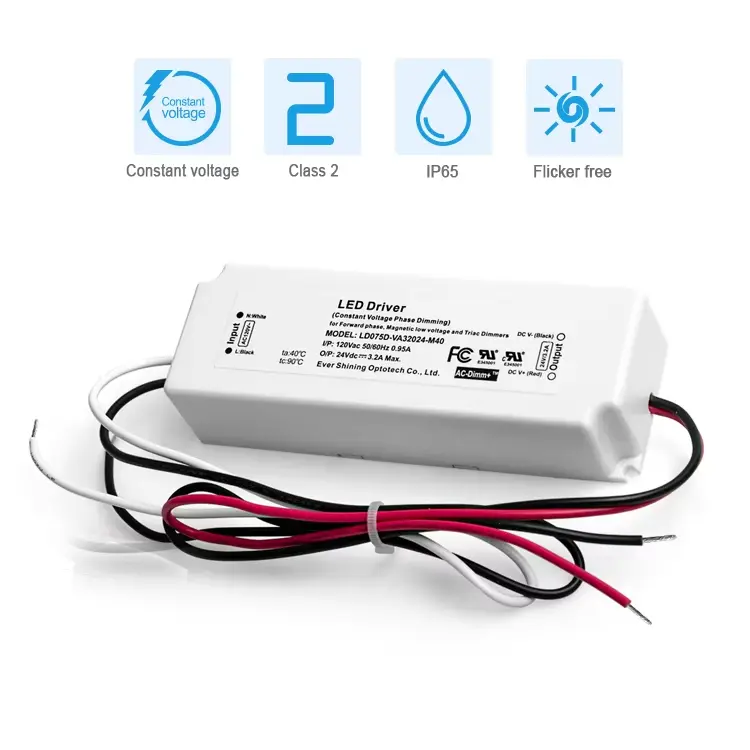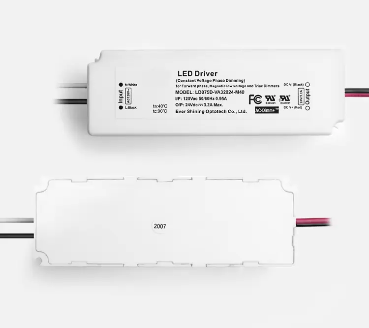TRIAC डिमिंगसह 75W स्थिर व्होल्टेज एलईडी ड्रायव्हर • सुसंगतता: बहुतेक मानक TRIAC/इन्कॅन्डेसेंट-शैलीतील डिमरसह कार्य करते. • स्थिर आउटपुट: 12V किंवा 24V LED सिस्टमसाठी स्थिर व्होल्टेज (CV). • गुळगुळीत नियंत्रण: पूर्ण-श्रेणी, फ्लिकर-फ्री मंदीकरण सक्षम करते. • मजबूत संरक्षण: विद्युत दोषांपासून अंगभूत सुरक्षा उपाय. • सामान्य वापर: मंद करता येण्याजोग्या LED स्ट्रिप्स, मॉड्यूल्स आणि ट्रॅक लाईट्ससाठी योग्य.