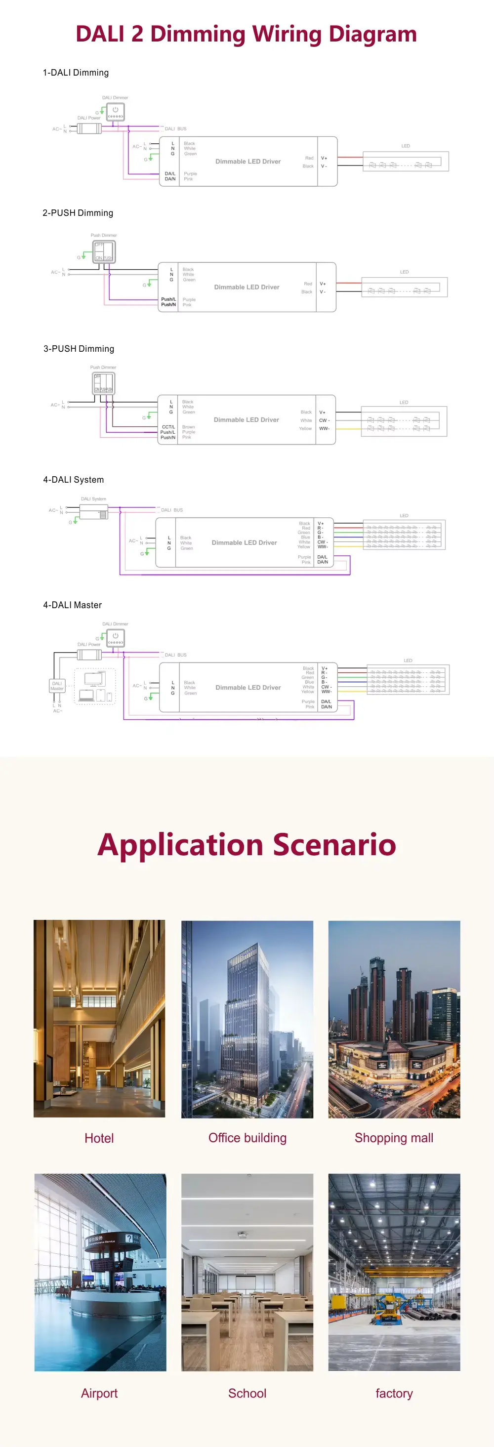 विश्वासार्हता आणि कार्यक्षमतेसाठी इंजिनिअर केलेले, ते सातत्यपूर्ण एलईडी ऑपरेशनसाठी स्थिर वर्तमान उत्पादनाची हमी देते. त्याचे 2-इन-1 डिझाइन इन्व्हेंटरी सुव्यवस्थित करते आणि विविध प्रकल्प गरजांना अनुकूल करते—स्वयंचलित स्मार्ट इमारतींपासून ते सोप्या रेट्रोफिट ऍप्लिकेशन्सपर्यंत.