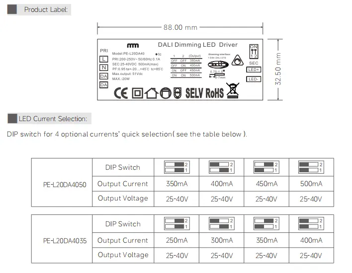 Starwell Constant Current DALI Dimmable Led Driver स्पेसिफिकेशन: