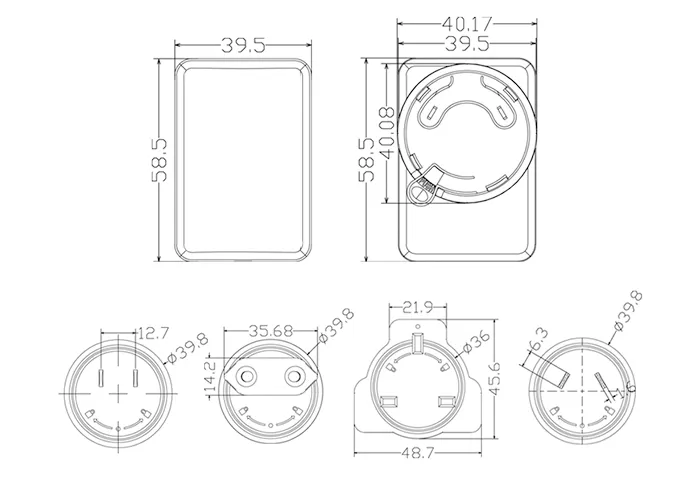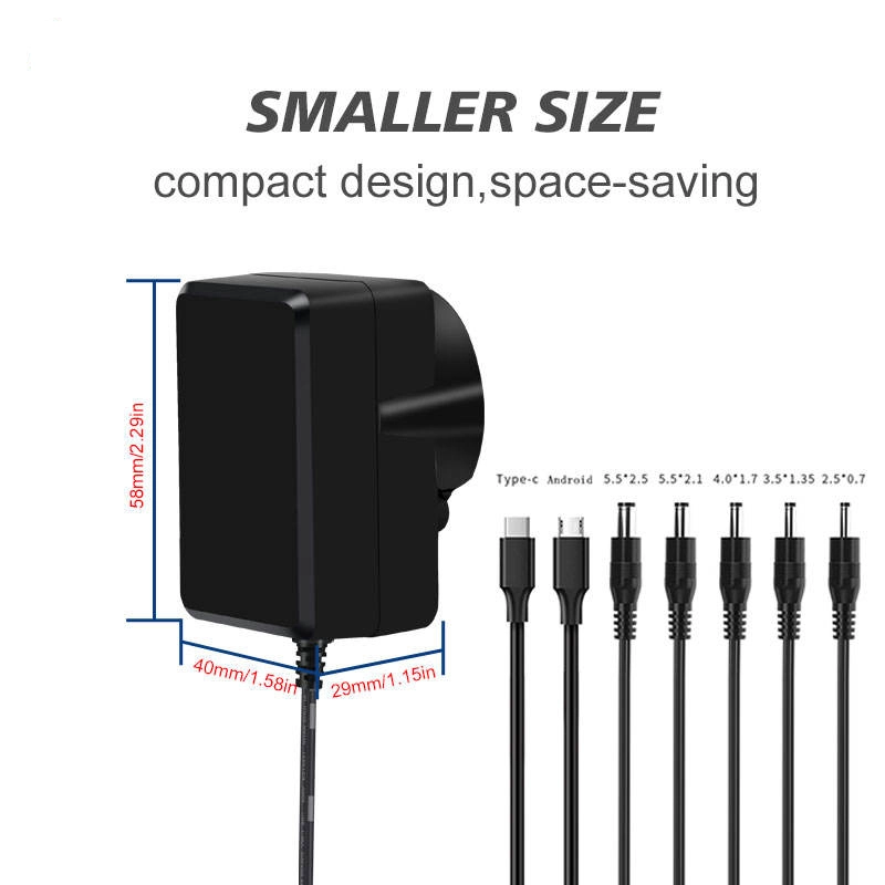 12V 24V अदलाबदल करण्यायोग्य प्लग पॉवर सप्लाय अडॅप्टर आयाम(मिमी):