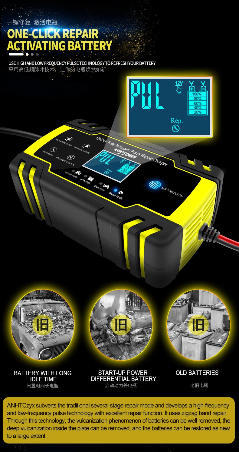 12V 8A ऑटोमॅटिक पल्स एजीएम efb जेल बॅटरी चार्जर लीड-ऍसिड स्टार्ट स्टॉप 3-स्टेज बॅटरी चार्जर कार मोटरसायकलसाठी |