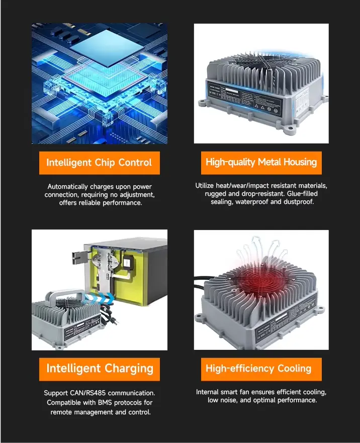 · लीड-ऍसिड आणि लिथियम बॅटरी दोन्ही प्रकारांना समर्थन देते, ज्यामुळे ती विविध फ्लीट्ससाठी योग्य बनते.