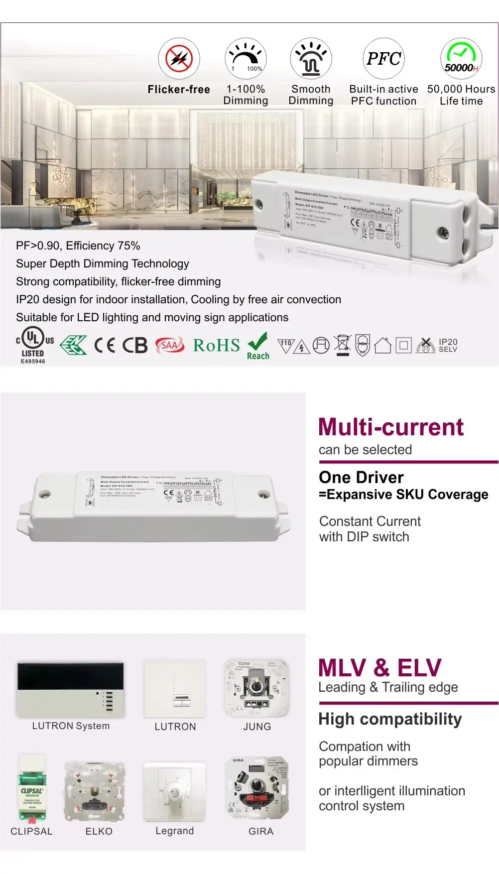 2. प्रमाणपत्रांचा सर्वसमावेशक संच ( UL, SAA, CE, CB, ENEC, ROHS, Reach ) म्हणजे तुम्ही या ड्रायव्हरला उत्तर अमेरिका, ऑस्ट्रेलिया, युरोप आणि इतर प्रमुख बाजारपेठांसाठी नियत उत्पादनांमध्ये आत्मविश्वासाने समाकलित करू शकता.