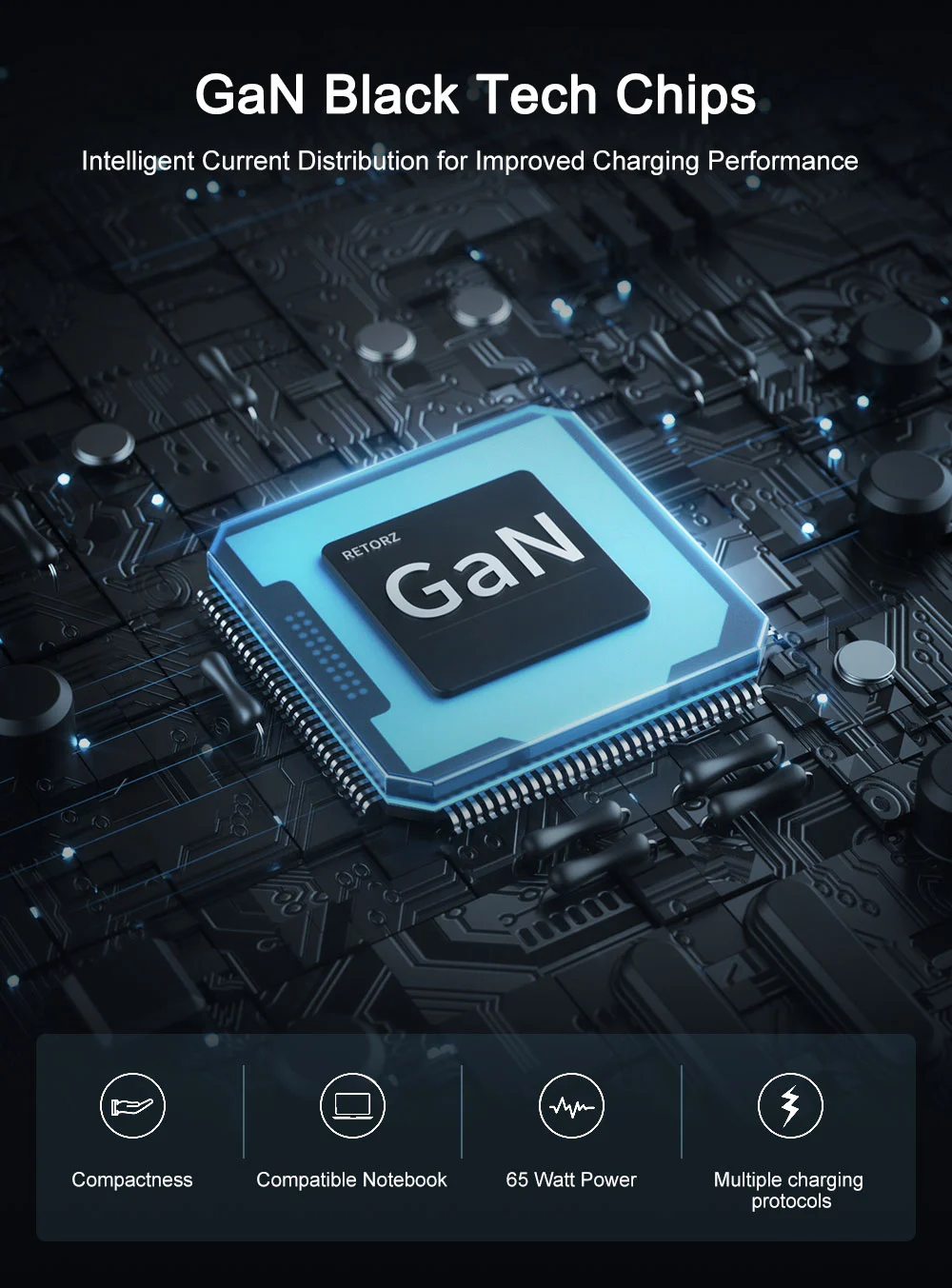- जलद चार्जिंग: 65W आउटपुट चार्जिंगची वेळ कमी करते, तुमचे डिव्हाइस त्वरीत पॉवर अप करते.